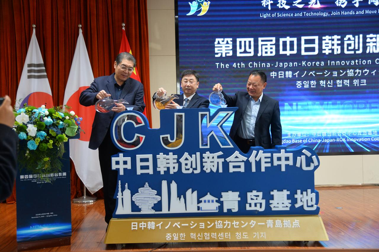 开幕上,青岛市科技局党组成员、副局长于炳波,青岛市民营经济发展局党组成员、副局长江长海,青岛市工商业联合会党组成员、副主席张宣付共同启动了中日韩创新合作中心青岛基地。据悉,青岛基地将在黑龙江、大连、苏州和海南建立节点合作,在日韩建立光州、大田、京都、奈良的枢纽合作,在中东、中欧筹备创新合作平台。中日韩创新合作中心青岛基地王可锋表示:青岛基地将以科技合作为核心、以全程服务为手段,以青年科技工作者和留学生为依托,以产业落地为目标,为中日韩企业提供知识产权、法律、人力资源、媒体宣传服务,并围绕农业科技、海洋科技、医养健康、航空产业四个产业方向,推动中日韩产业合作纵深发展、形成中日韩+X的青岛特色。