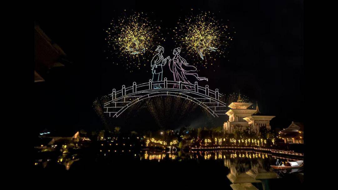 作为黄梅文旅的标杆,东山问梅村在今年春节凭借硬核科技强势“出圈”。当夜幕降临,数百架AI无人机编队腾空而起,以夜空为画布,精准变幻出女驸马、黄梅挑花、锦鲤等经典图案,与璀璨焰火交相辉映 。漫天孔明灯缓缓升空,来自武汉的游客叶女士牵着孩子许下“国泰民安”的心愿。石板路上,鱼灯巡游婉转穿梭;全新创编的贺岁大戏《天官赐福》将山水实景与说唱RAP创新结合,40余场非遗展演让游客沉浸式感受“最潮中国年” 。
